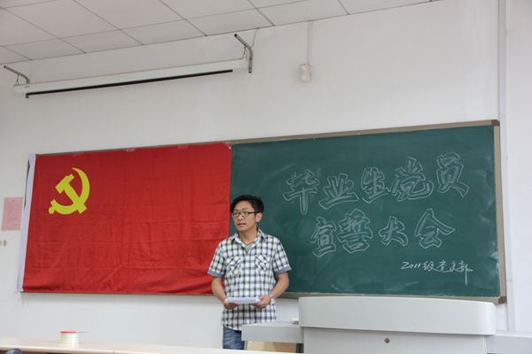 521日下午,我院于法新311举行毕业生党员入党宣誓大会。辅导员于沂仟及本科11级、研究生12级毕业生党员、预备党员参加会议,会议由本科毕业生党员代表李忠柱主持。