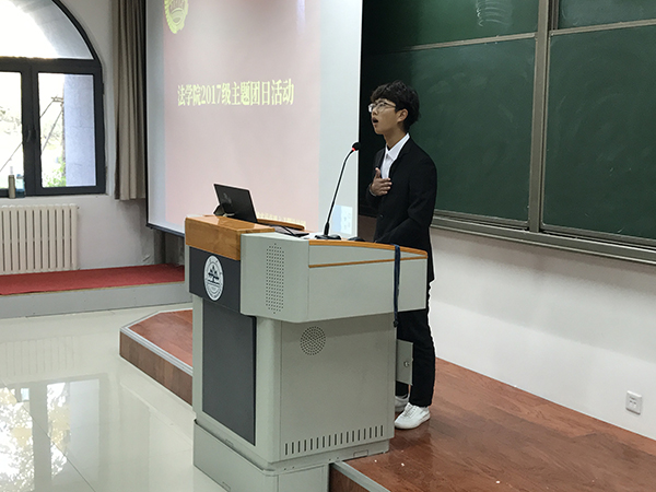 活动伊始,潘江昊同学结合习近平总书记的知青经历,向同学们分享了自己的阅读感受。他谈到“为学须及早”,并告诉17级的同学们拥有艰苦奋斗的意志品质和独立思考的能力将为自己的人生助力,有情有义、敢于担当也是不可多得的珍贵品质,鼓励17级的同学们向青年习近平学习,尽早为今后的大学生活制定计划。