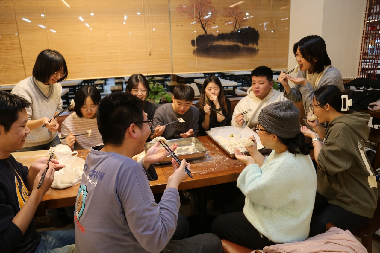 冬至不仅是二十四节气之一,更是我国古代一个重要的传统节日,素有“冬至大如年”之说。冬至吃饺子成为习俗被流传下来,这其中包含了中华民族对美好生活的祈愿与向往。在这个重要的日子里,同学们一起动手包饺子,感受“家”的氛围和冬至的文化内涵,既更深入地了解和传承中华优秀传统文化,又增进了感情,为大学生活留下了难忘的记忆。